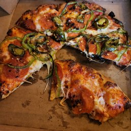 Solid quality pizza with a doughy chewy crust. We tried them out cause they were offering buy one get one free XL 16" pizzas on Uber Eats, and for $26 we thought it was a good deal. It cost $2.75 to add the smallest amount of bell pepper I've ever seen, but they were still pretty good.